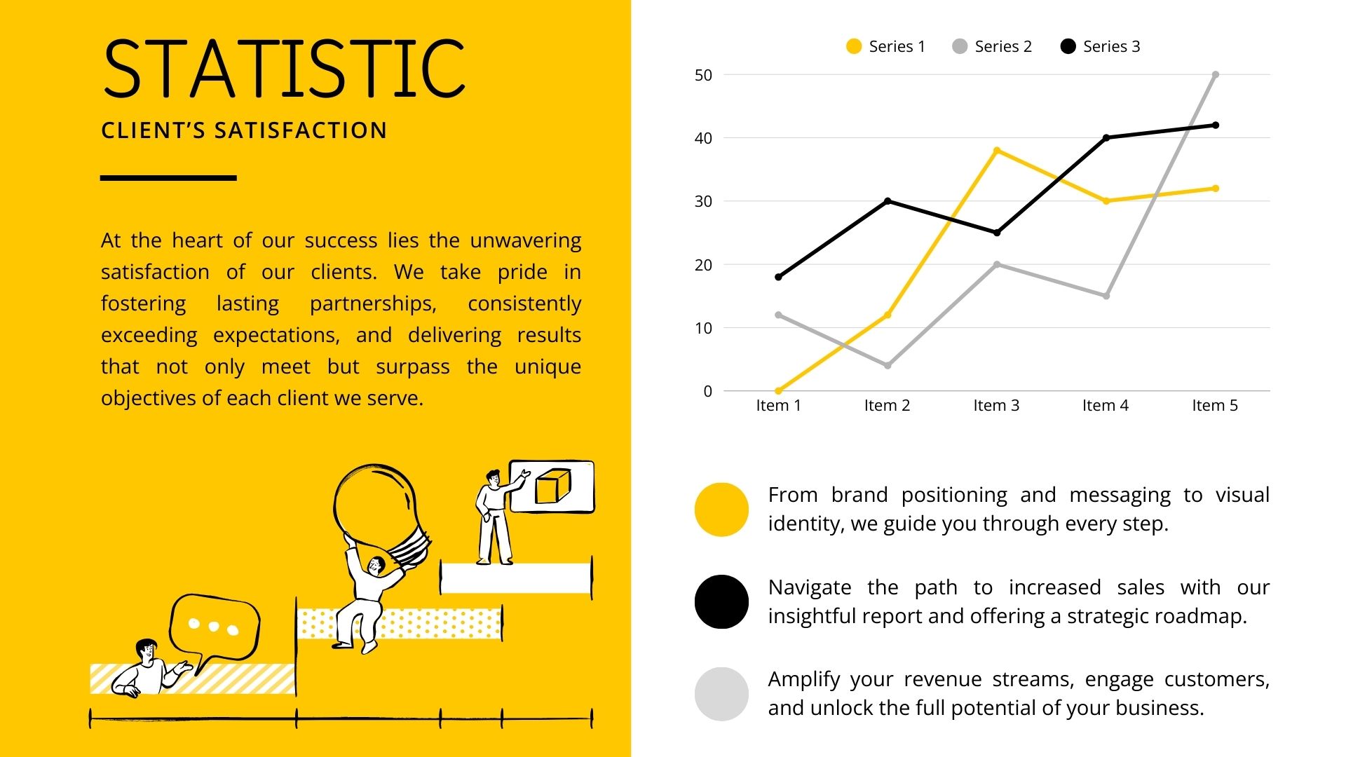 Ejemplos: infografía de impacto, previsión financiera, diapositiva destacada para inversores